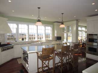 Beautiful home in Pocomo with cottage/pool house and swimming pool. The FIRST FLOOR has very high ceilings with wall to wall windows and French doors out to the pool, pool house and patio. Gorgeous artwork throughout. Gourmet kitchen and walk-in pantry with reading room off of it. Formal dining room and formal living room with TV. Office/den with Murphy bed and first floor guest bedroom with two full beds and TV. Full hall bathroom. Laundry room. Powder room. The pool house has a very private King bedroom suite with stunning views, walk in closet and full bathroom. SECOND FLOOR: Sitting room with TV. Large master suite with TV, full bathroom, private office and deck with stunning views. Two additional guest bedrooms (Queen and a Full- both with TVs) with a shared walk-thru full bathroom with double vanity sink, and deck with sweeping views.