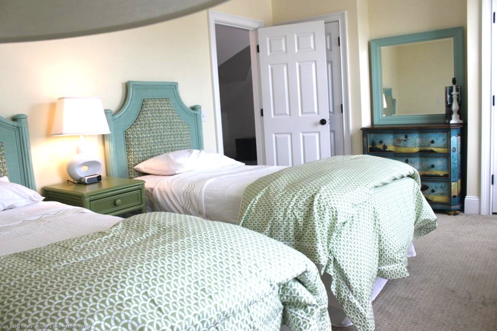 Second floor: The second primary bedroom (queen) with ensuite bath. Third bedroom (queen) includes sitting balcony with pastoral views. Fourth bedroom (2 twins) shares a full bath.