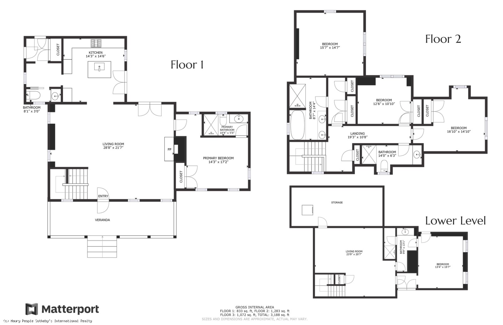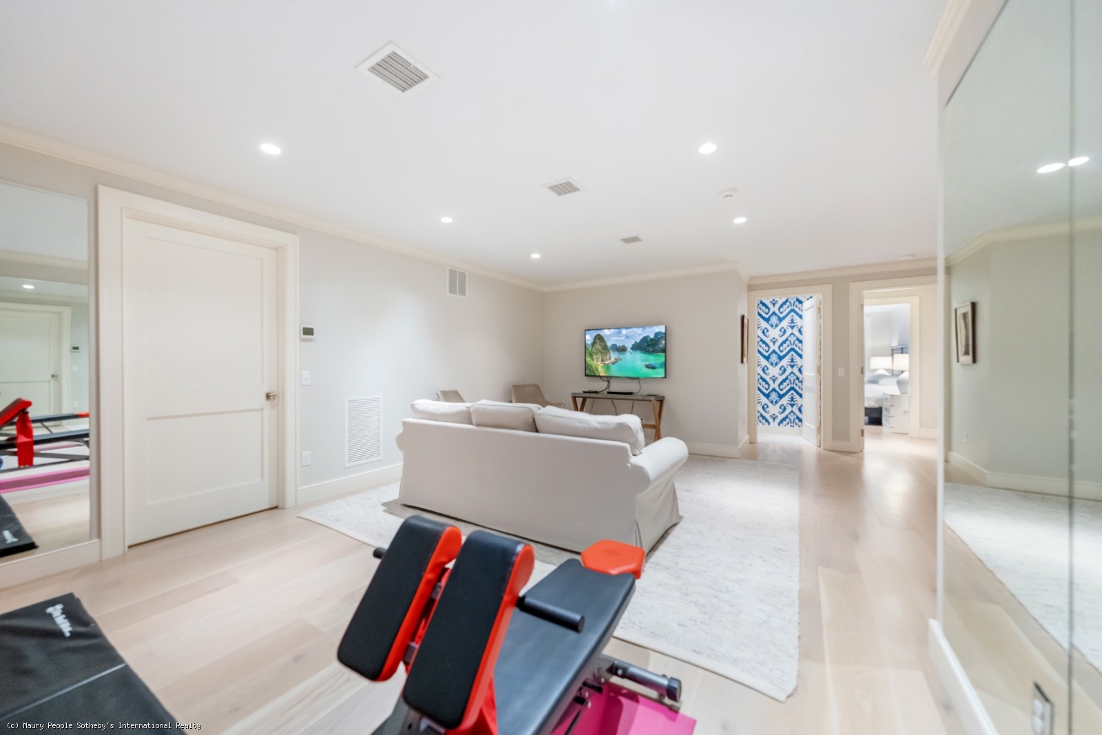 The finished lower level is ideal for extended stays, with a gym area, an additional queen guest suite with full bath, and direct walk-out access to the back patio.