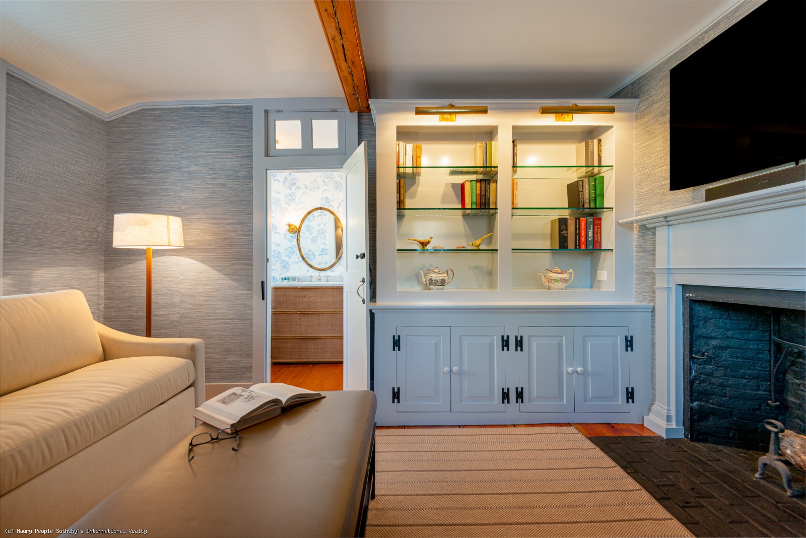 The first floor features a king sleep sofa and access to the half bath. The newly renovated light filled kitchen featuring a wet bar, pantry, and ample storage perfect for everyday living and entertaining. Many of the home’s original details, including an inglenook fireplace and pine floors, have been thoughtfully preserved, creating a warm and inviting atmosphere. The outdoor space includes a private patio and parking space, making this historic gem as functional as it is charming. The location is perfect for quick strolls into town for dinner or theatre.