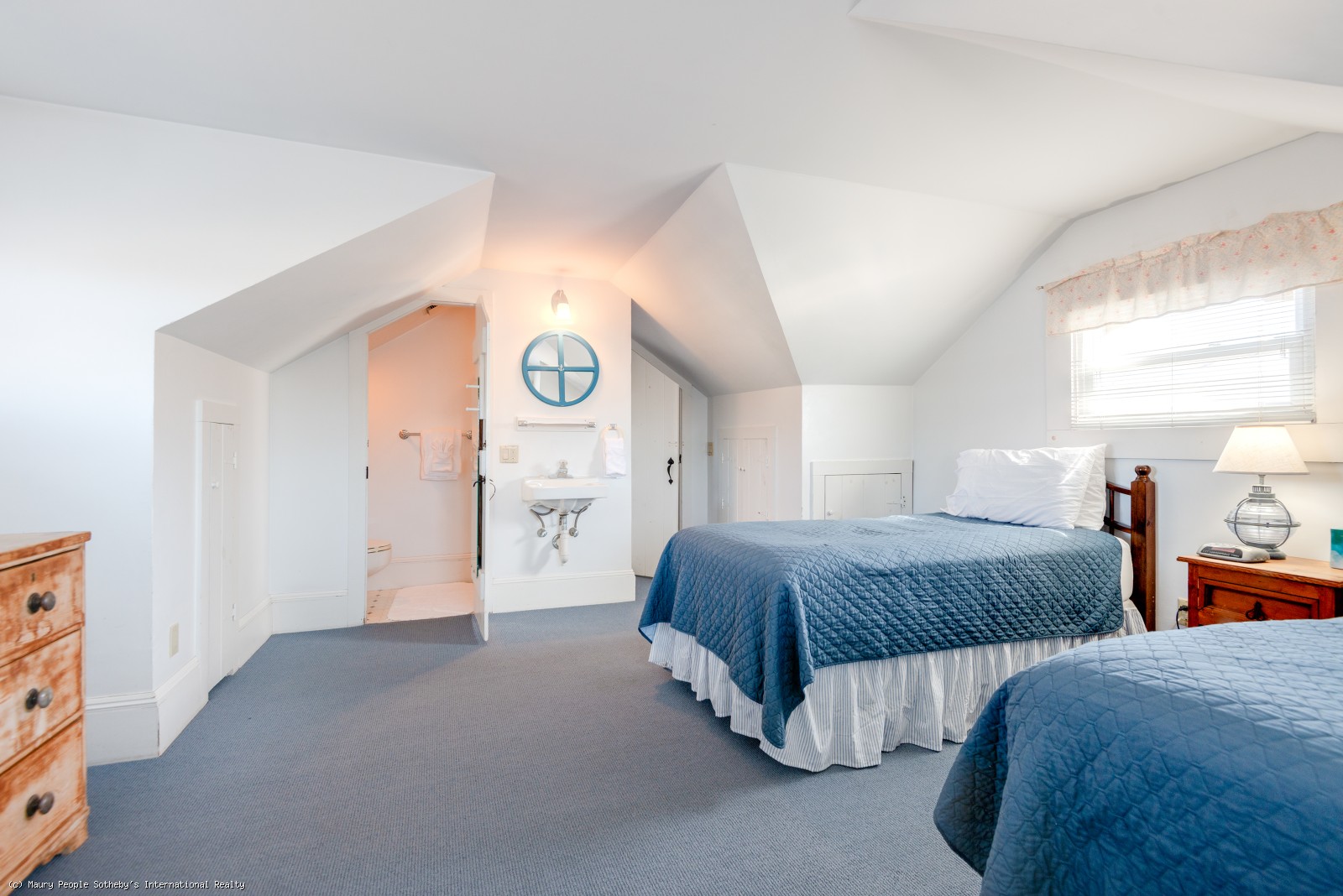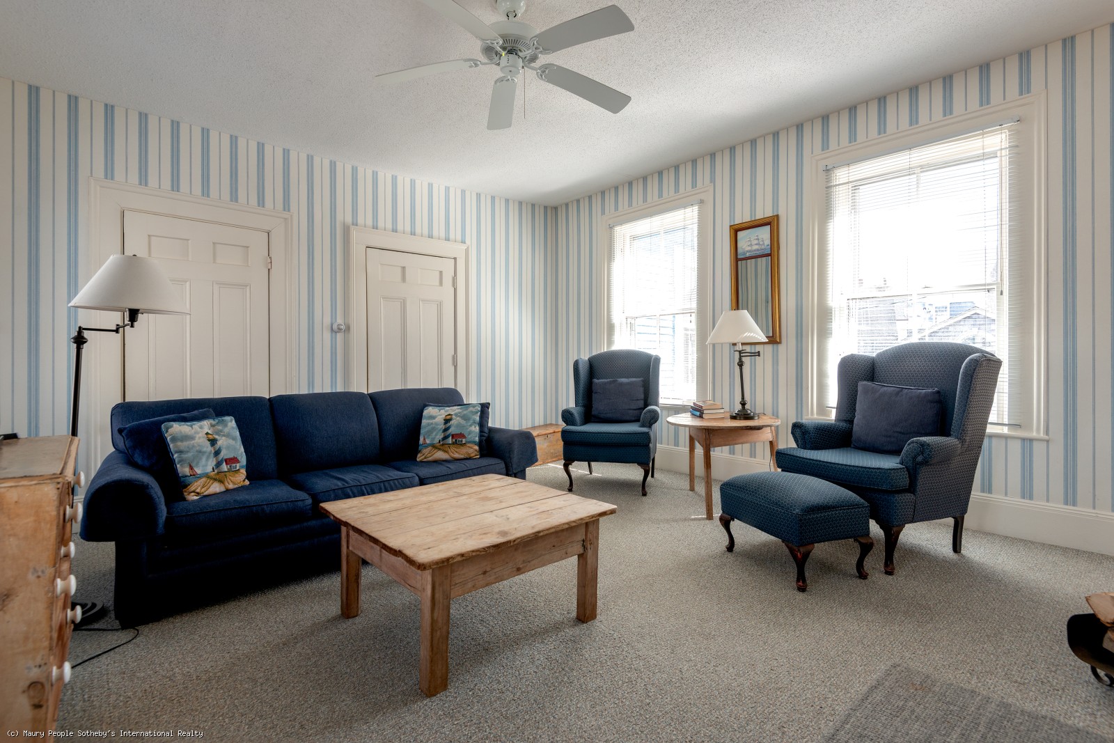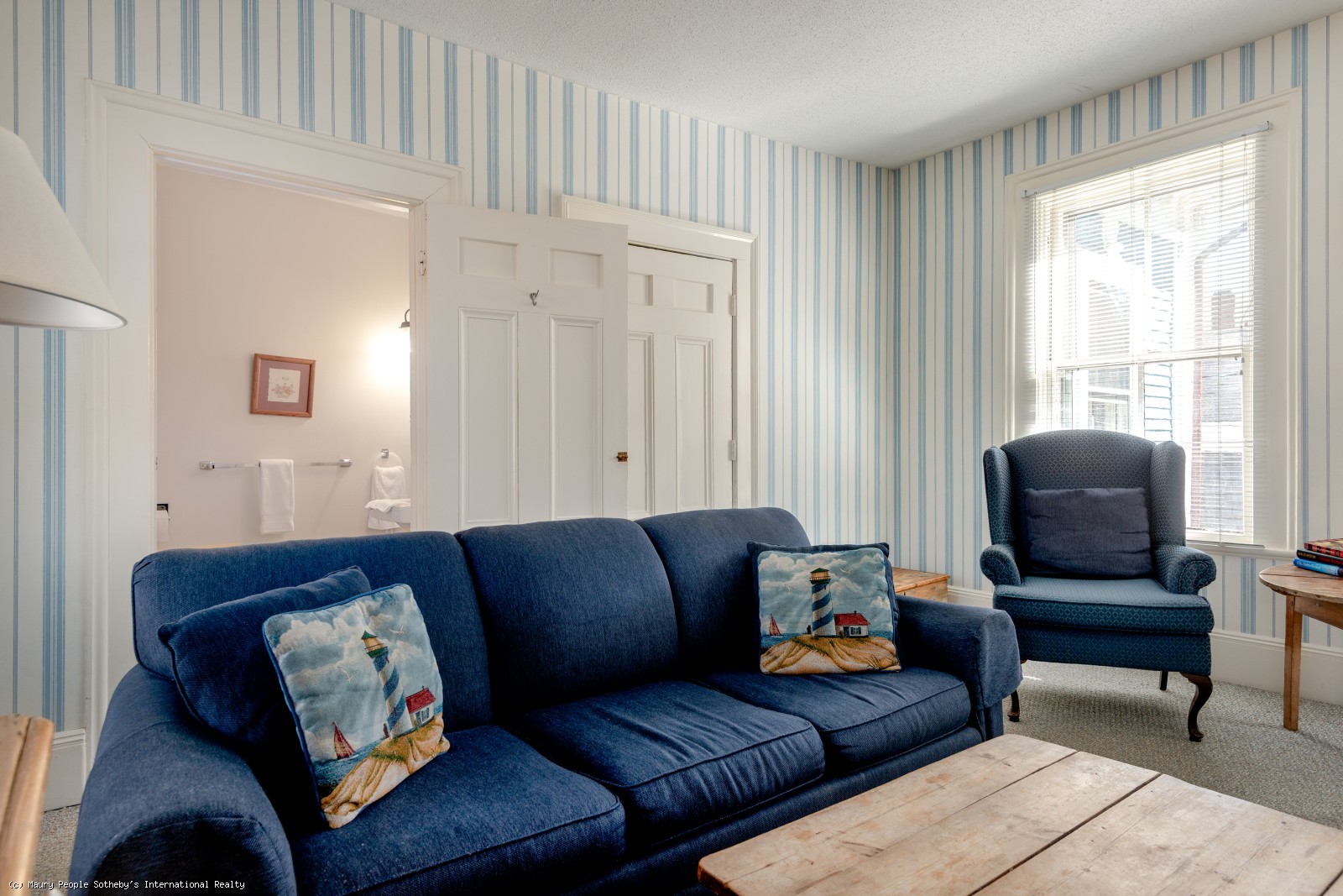 Each bedroom is well-appointed for comfort and privacy, while the living room provides a cozy gathering space complete with modern furnishings and classic Nantucket charm. Amenities include Wi-Fi, flat-screen TVs, and in-unit conveniences that make extended stays easy and enjoyable.