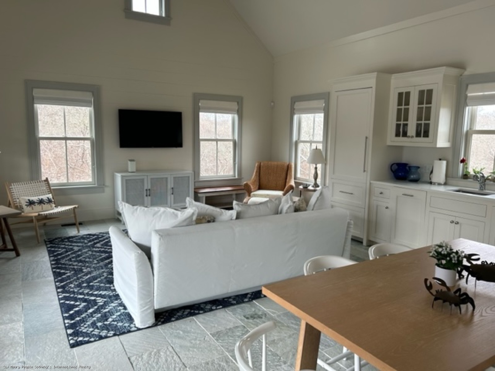 Great private getaway across from the dunes, beautifully renovated in 2021, located on just under 3 acres, on a sandy way across from the beach and dunes. Fabulous views. Large private yard with in-ground swimming pool with cabana including kitchen and full bath. The first floor has four bedrooms. King bedroom with full bath, a bunk/ single bedroom and a twin bedroom which share hall bath, and a first floor Queen suite with a private bath. There is also a downstairs laundry area, and a small den with access to a covered porch. Second floor features bright and spacious open living room with cathedral ceilings with fireplace and large deck to gaze at the ocean. Dining room has westerly facing decks and both living areas face south with views of the Atlantic Ocean. Custom kitchen with pantry and ample room for storage and entertaining. Second master suite with private bath. Half bath. The cabana features a living space, kitchenette, pull-out sofa bed, full bath, & washer/dryer.