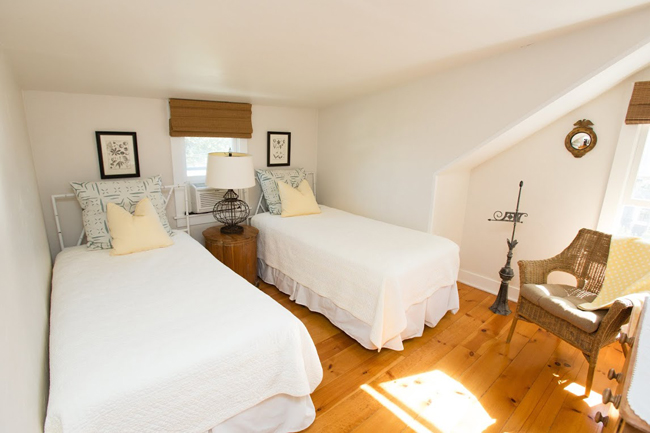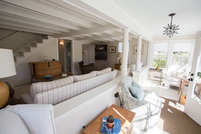 Freshly updated with a renovated kitchen and bathroom,this Nantucket vacation home is situated in the heart of Codfish Park, just moments from the sights and sounds of the Atlantic Ocean. The cottage features two levels of living space, four guest bedrooms, a charming sun porch with ocean views and a prime location across the street from 'Sconset Beach and just moments to the area's quaint village. There is so much to do from this location including, of course, daily beach trips, but also visiting Claudette's Sandwich Shop, seaside lunches at the Summer House Pool, dining at the Chanticleer or the 'Sconset Cafe, or walking along the Baxter or 'Sconset Bluff Path for stunning ocean views. Enter into sunroom, one step up to spacious living room, one bedroom with queen bed, bathroom with shower, eat-in kitchen, laundry and mud room. All downstairs floors are painted wood ( except bathroom.) Upstairs is the primary bedroom with queen bed, and a second bedroom with twins- all with pine floors. All three bedrooms have window AC units. NO PETS