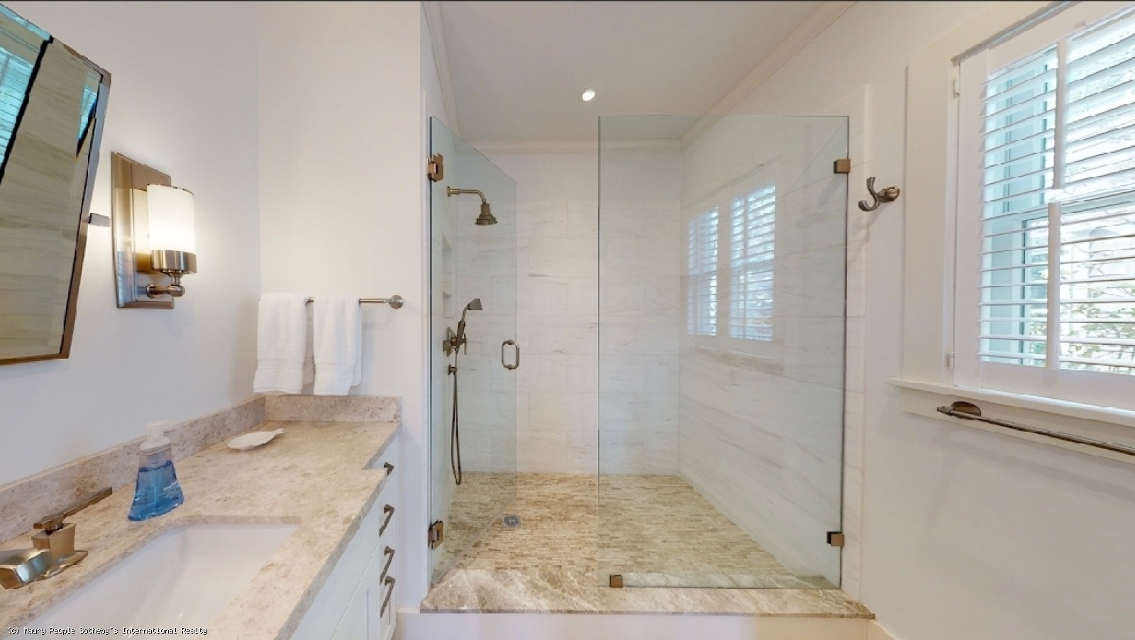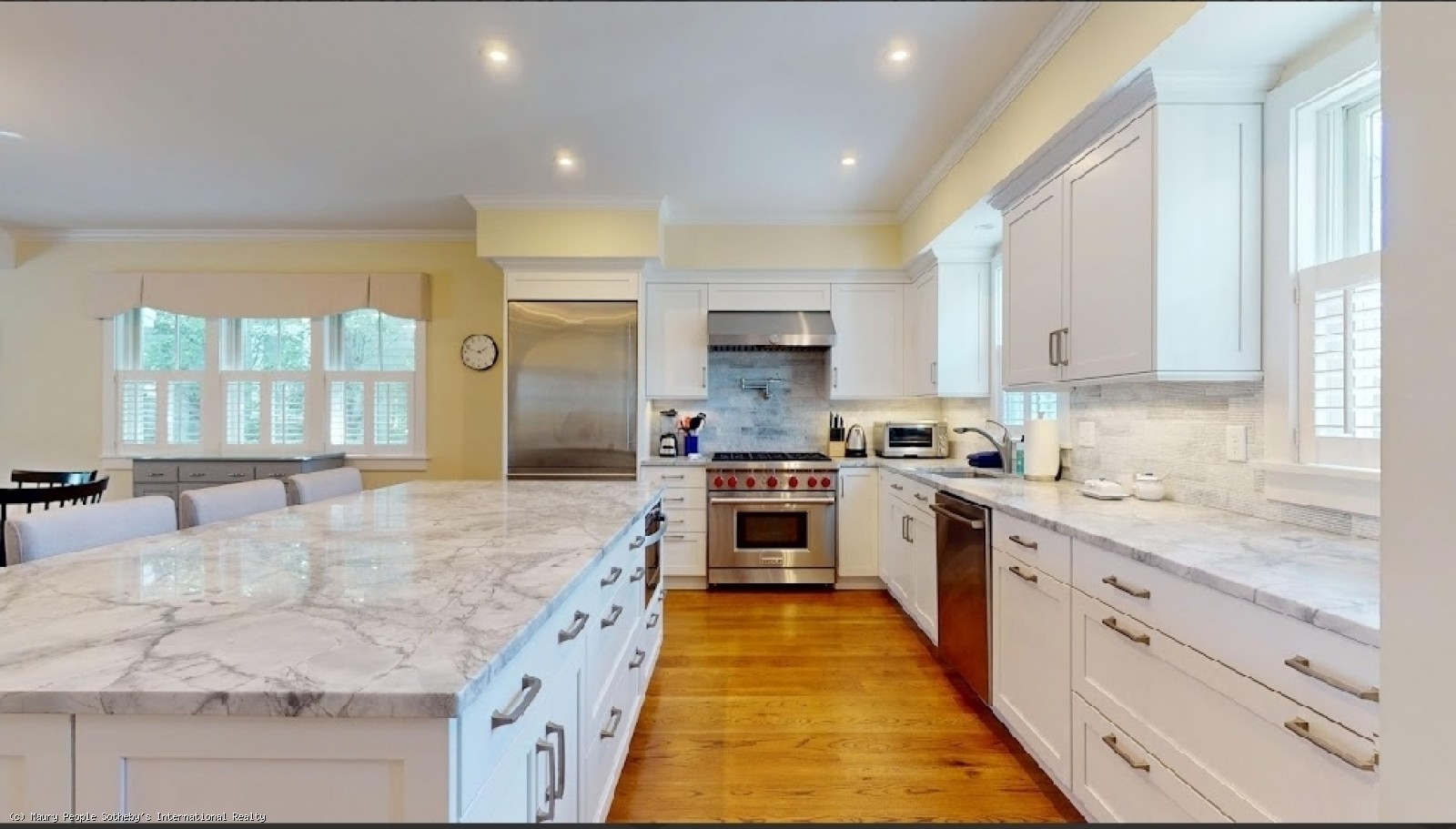 Beautiful, newer home in the Cliff Area. First floor: Bright and Sunny open living, dining, kitchen area. Top of the line appliances, marble countertops, stainless steel appliances. Sliding doors lead to a lovely patio. Large, comfortable TV room, Master Suite with King sized bed and beautiful tiled bath, sliders leading to the patio, Laundry room and powder room. Second floor: Three ensuite bedrooms. Close to Town and beaches this is the perfect rental home.
