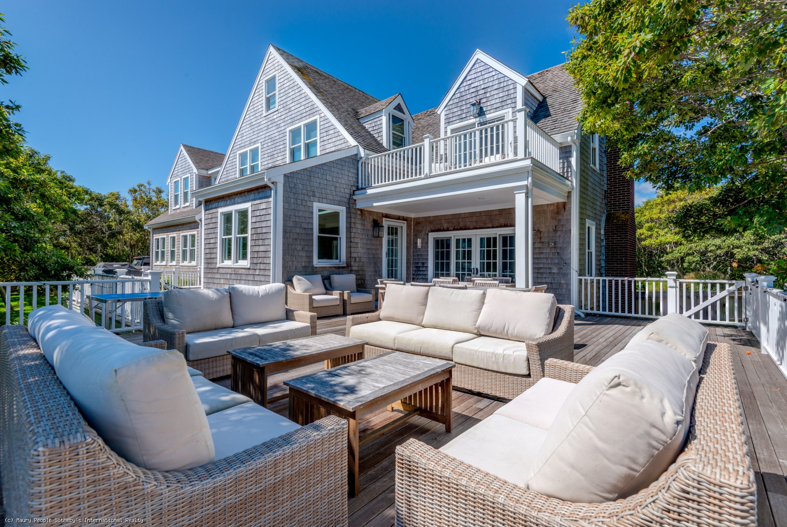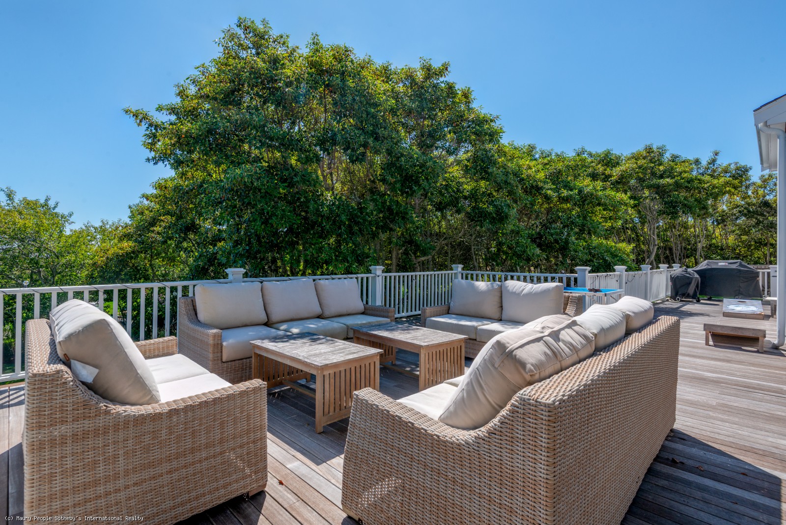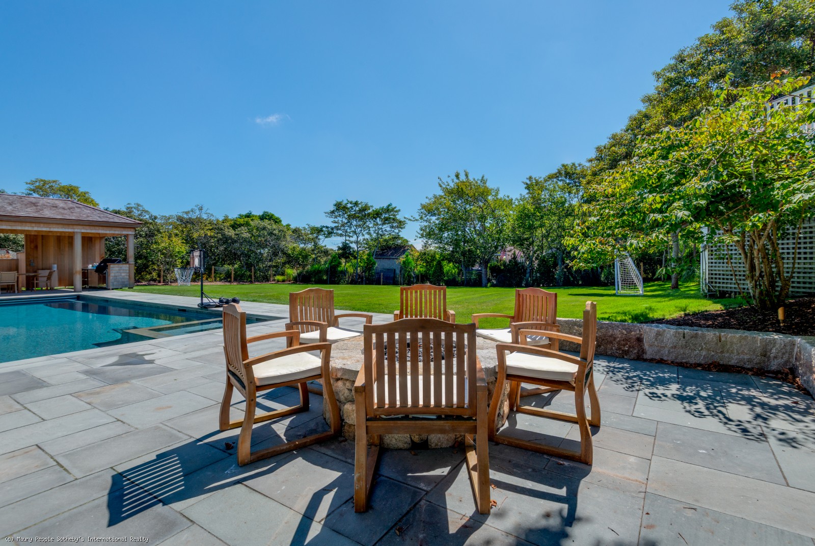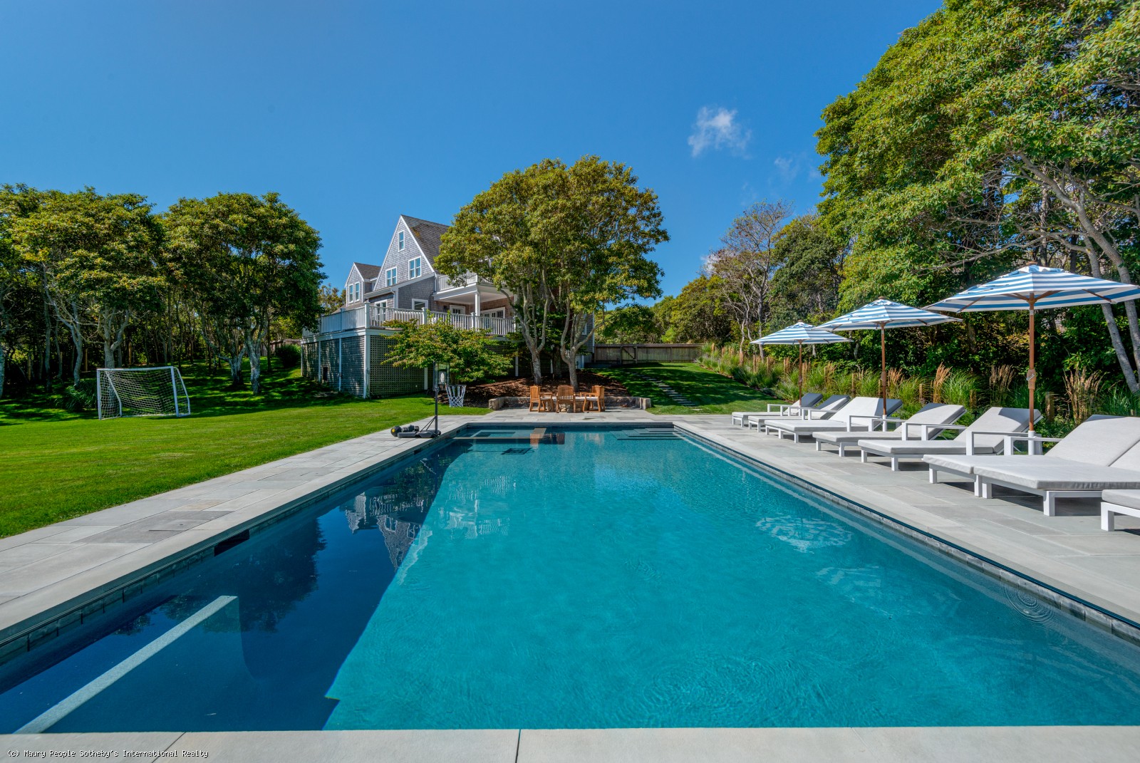 Privacy abounds. This gorgeous newly renovated home in Tom Nevers offers peace and privacy with a modern vibe that accentuates coastal living and Nantucket style. Beautiful, light filled, open living space with architectural details throughout. The first floor has an open concept living and includes a light filled gourmet kitchen, gracious seating area and large dining area, living room with fire place and French doors that lead out to an expansive deck and entertaining space with private back yard, large swimming pool and spa with a large cabana. There is a primary suite, office and laundry room on the first floor. One the second floor the primary bedroom suite features a sleek, fresh and spacious bedroom with vaulted ceilings and french doors to the deck with magical sunrises and distant ocean views. There are four additional bedrooms on the second floor. There is also a full basement with bunk room and living room. This location is conveniently located just a short distance to beaches, bike paths, tennis and Sconset Village.