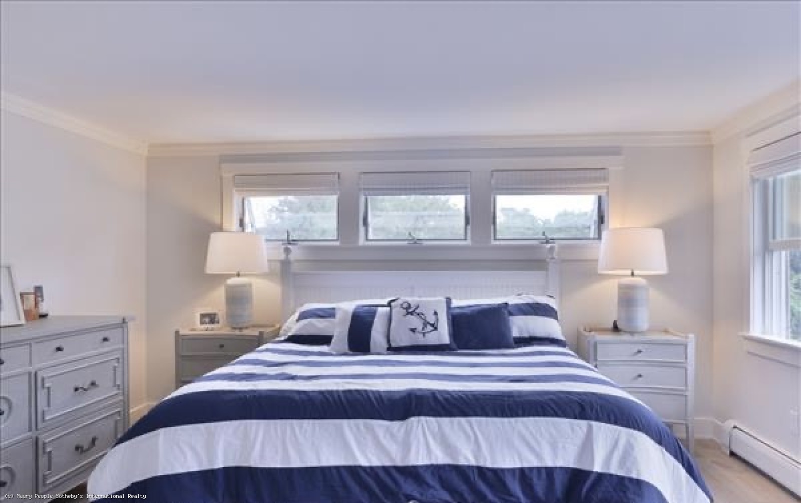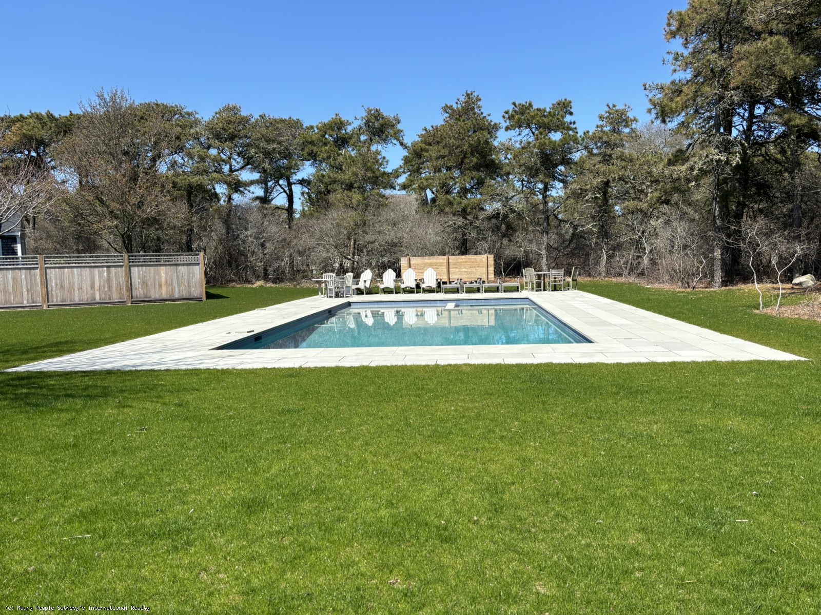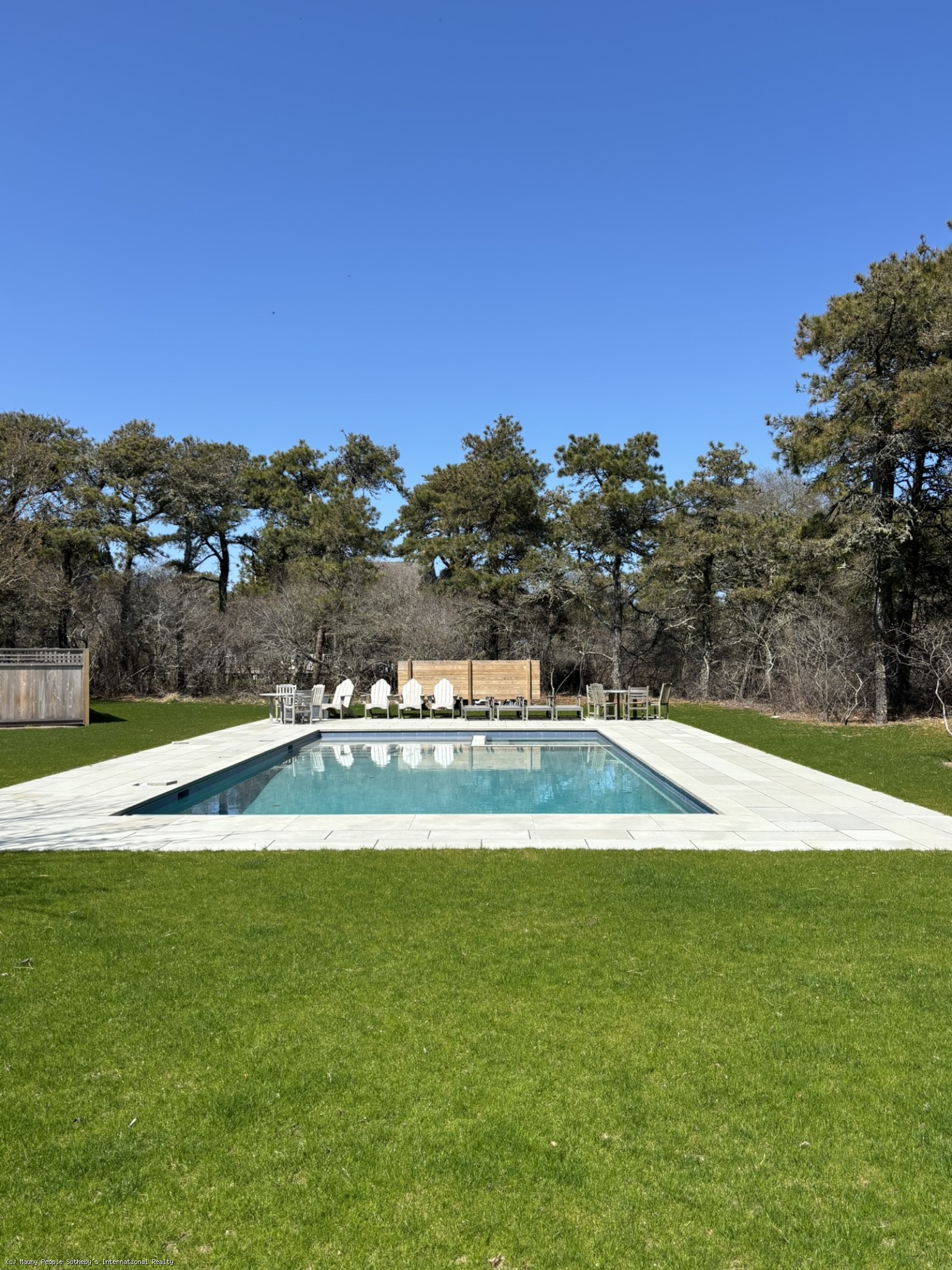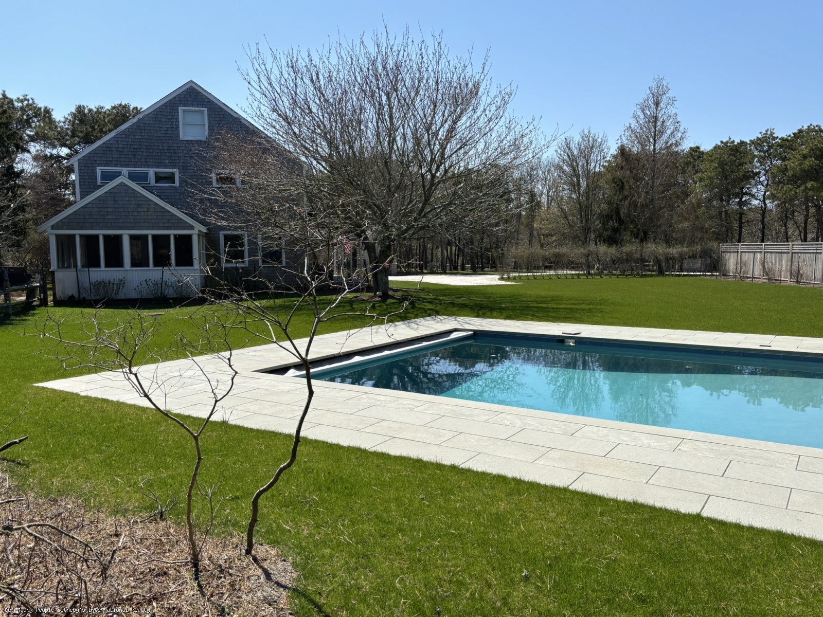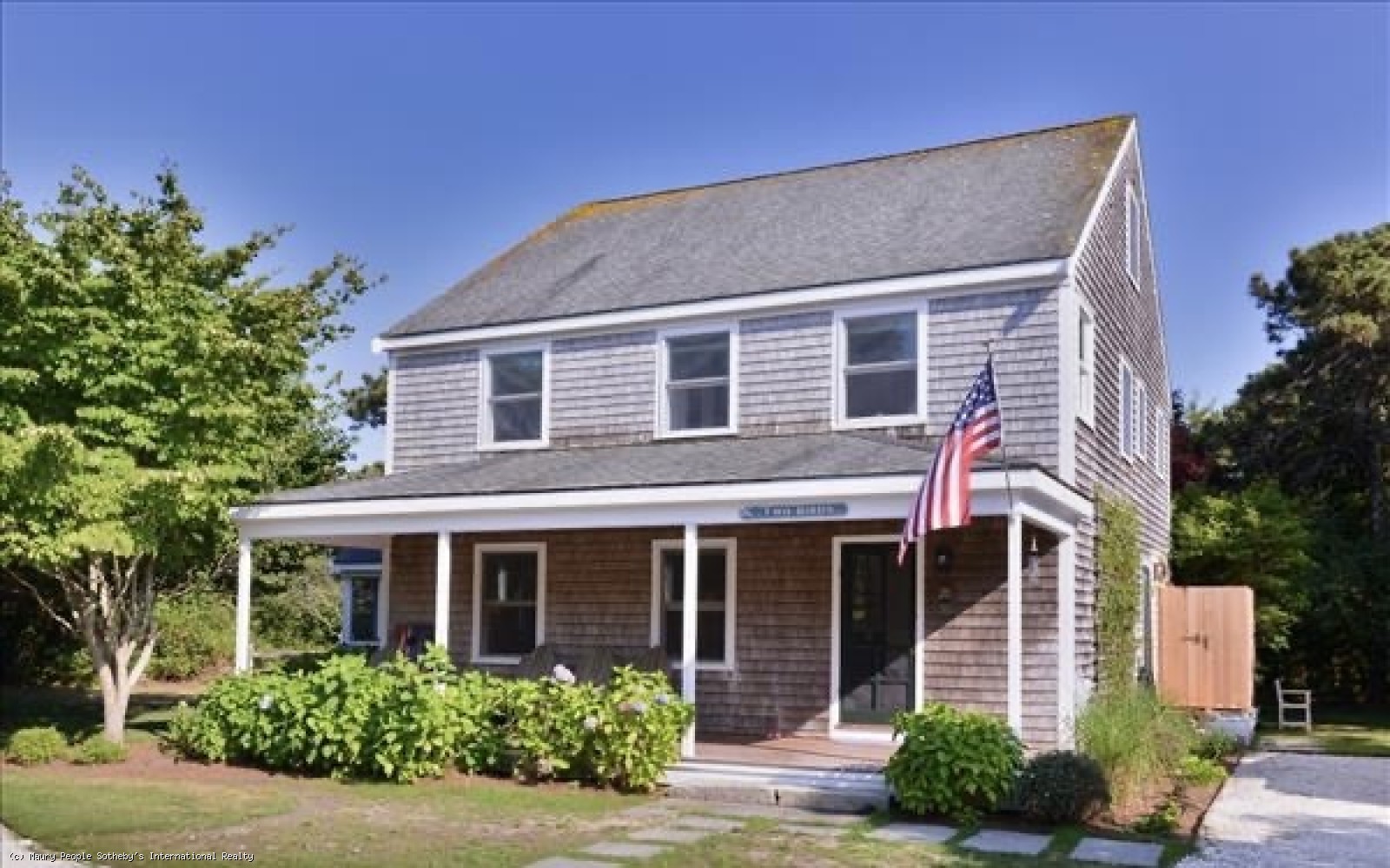 This elegant Nantucket rental home in the sought-after Surfside neighborhood is less than a mile from Surfside Beach. The property features a private pool, spacious patio, and large lawn ideal for outdoor dining and entertaining. The home includes six bedrooms and 3.5 bathrooms across three levels.