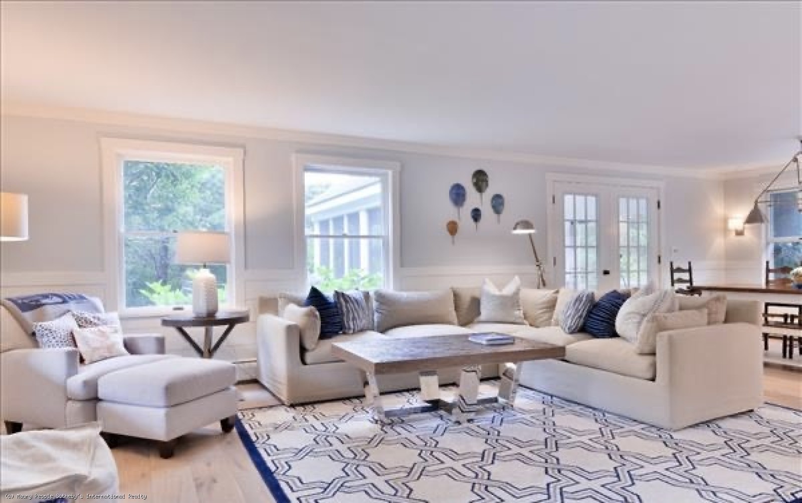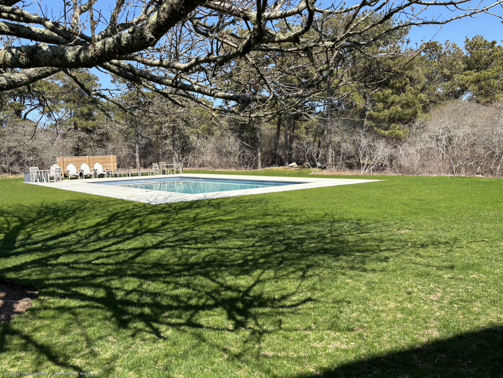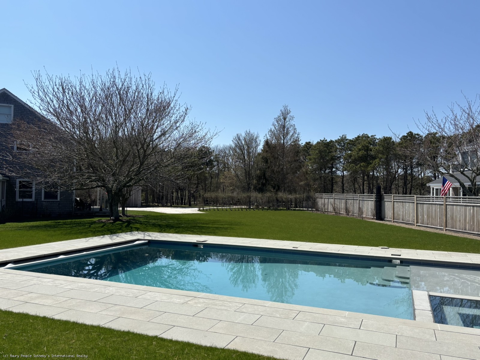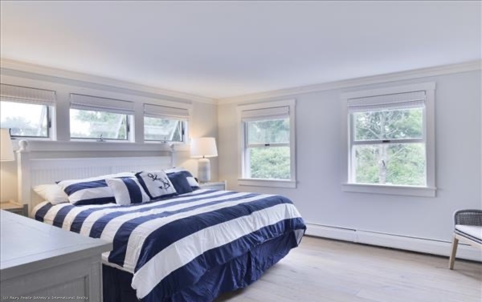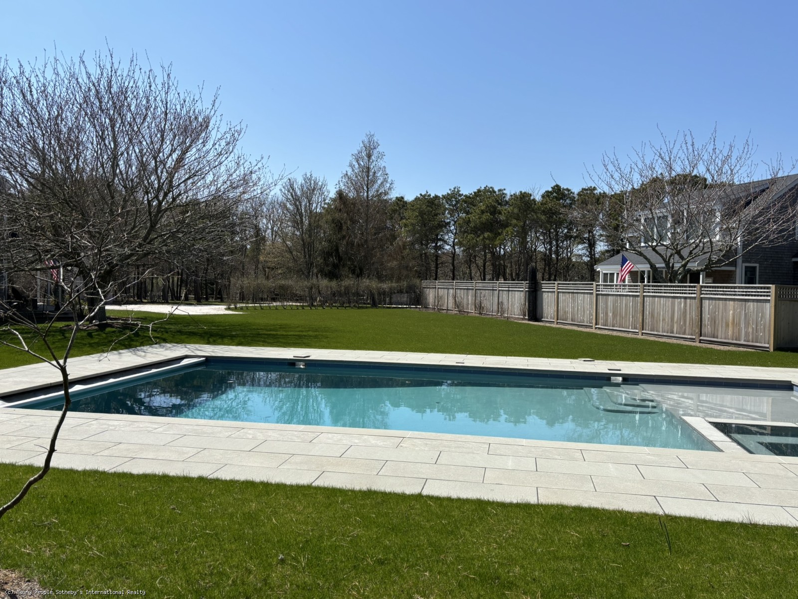 This elegant Nantucket rental home in the sought-after Surfside neighborhood is less than a mile from Surfside Beach. The property features a private pool, spacious patio, and large lawn ideal for outdoor dining and entertaining. The home includes six bedrooms and 3.5 bathrooms across three levels.