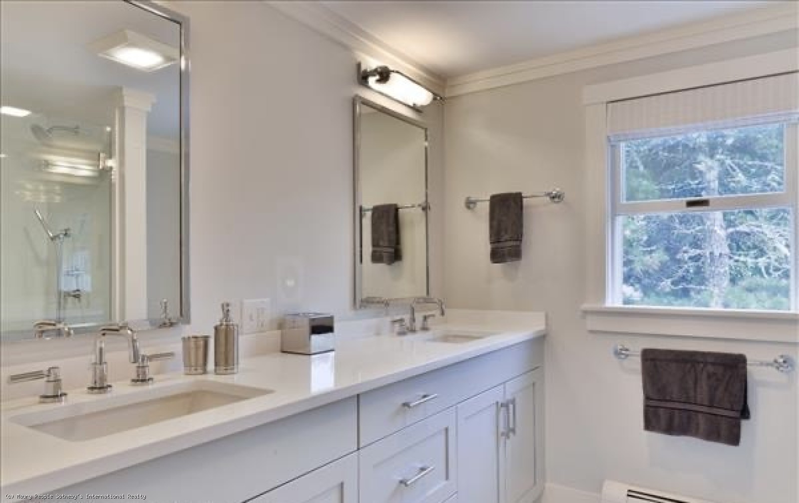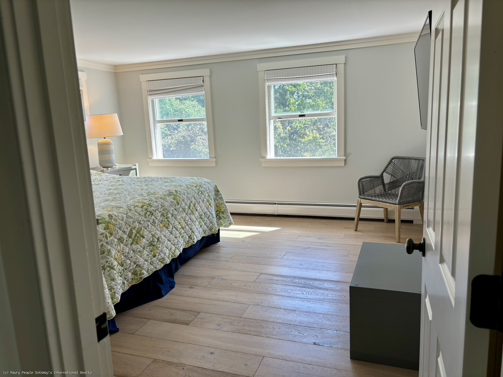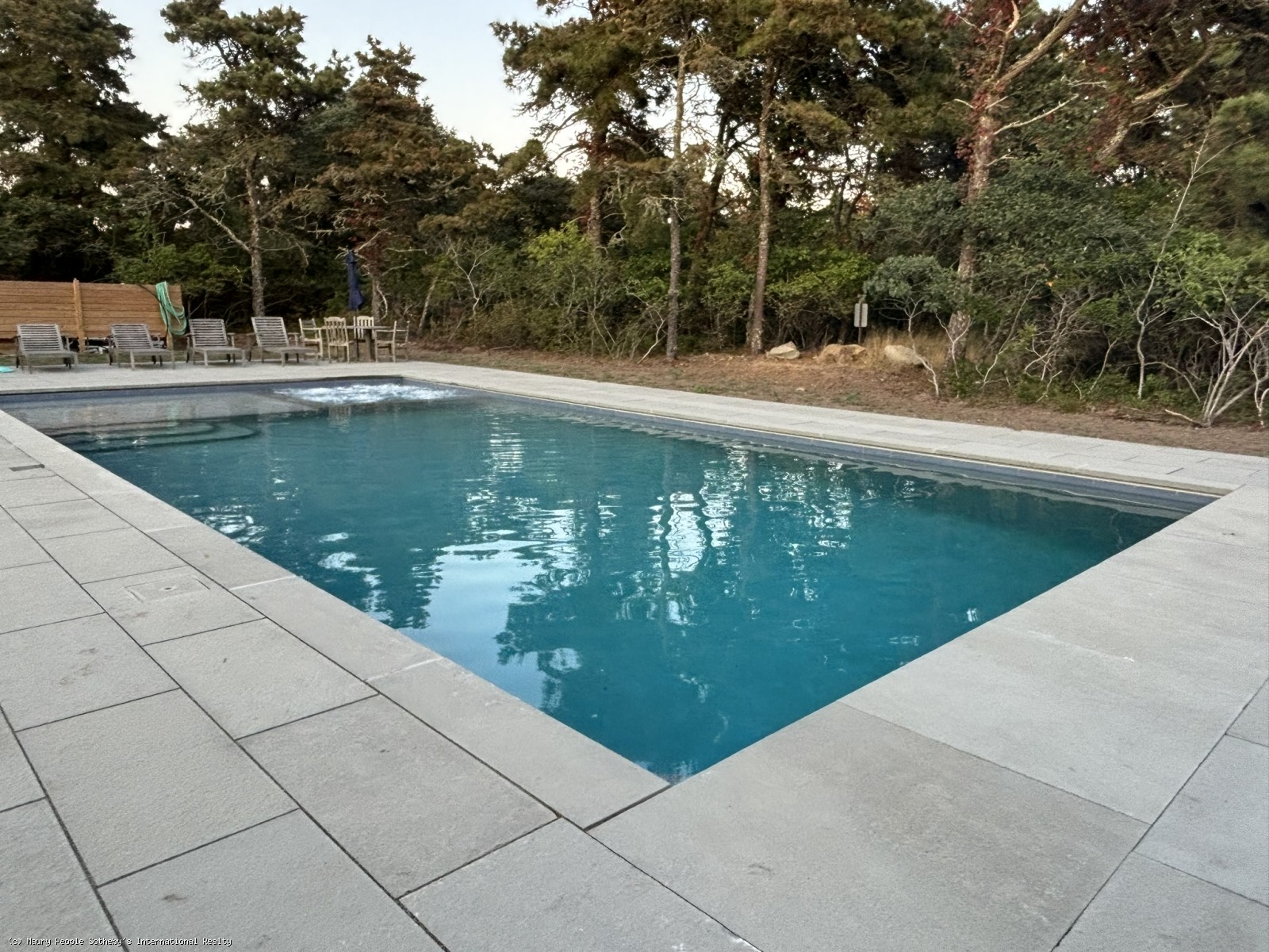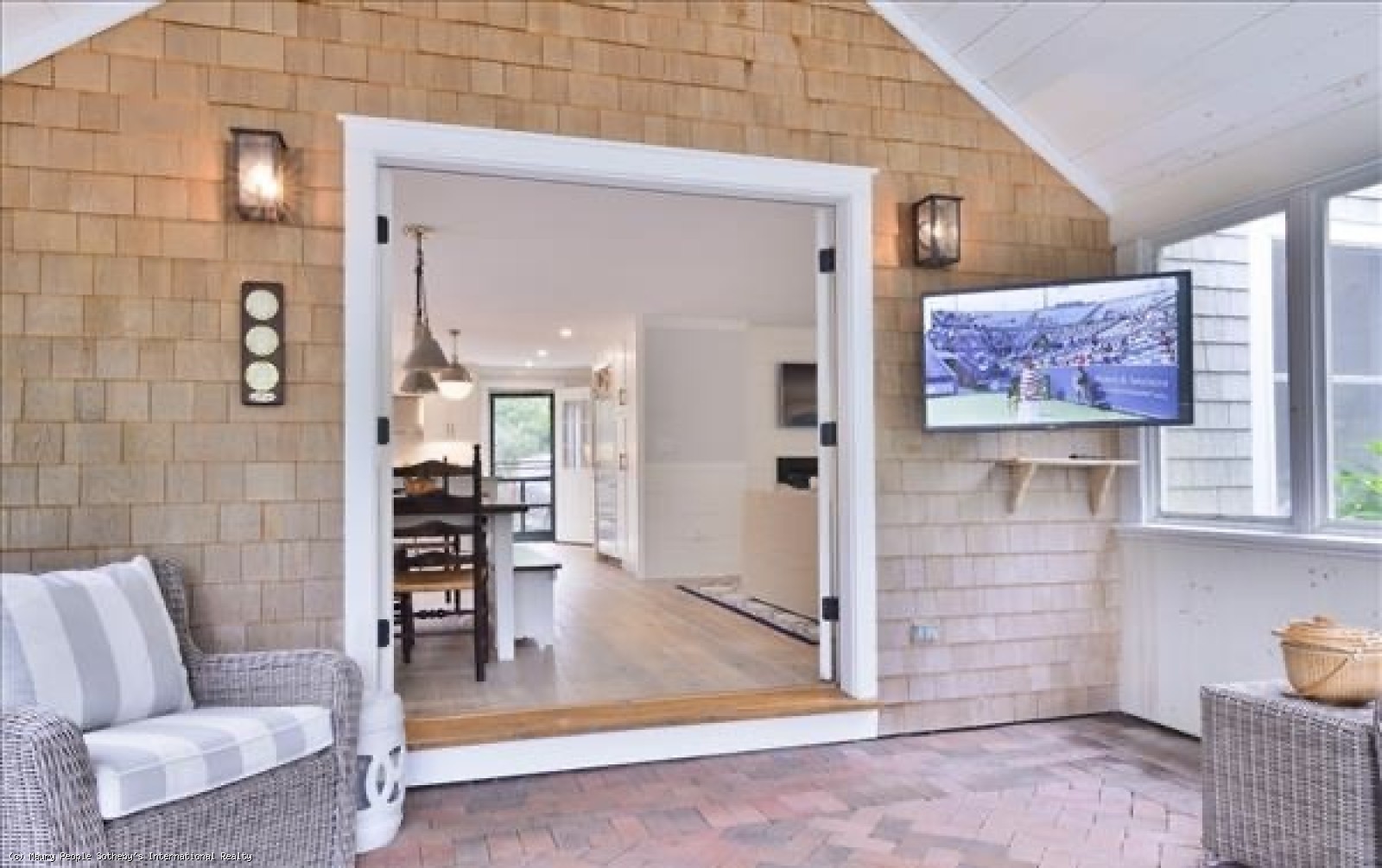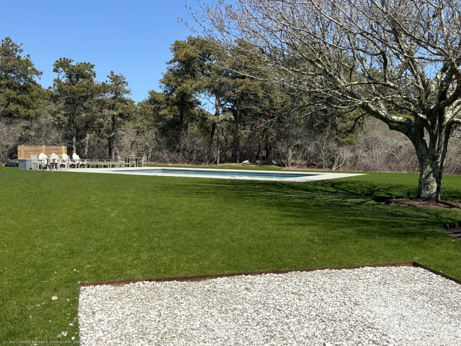 This elegant Nantucket rental home in the sought-after Surfside neighborhood is less than a mile from Surfside Beach. The property features a private pool, spacious patio, and large lawn ideal for outdoor dining and entertaining. The home includes six bedrooms and 3.5 bathrooms across three levels.